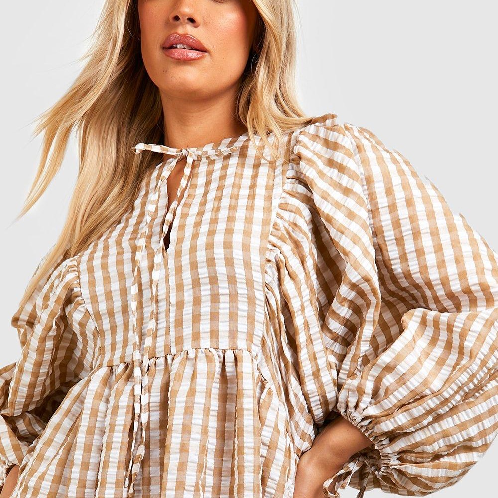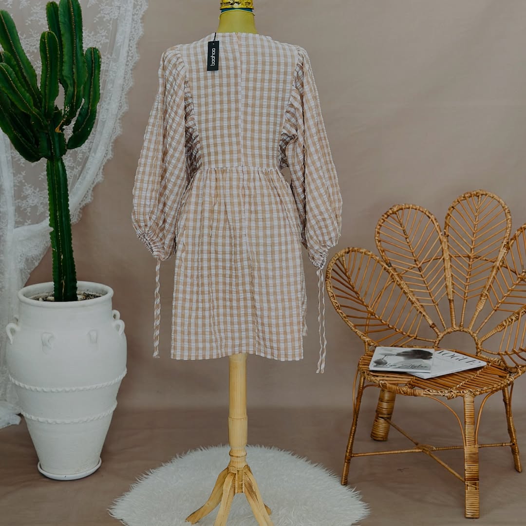 پیراهن زیبا نخ تنخور ازاد تگداربرند boohoo