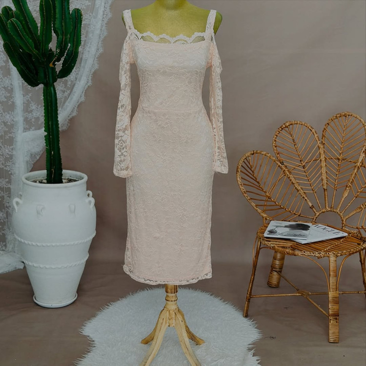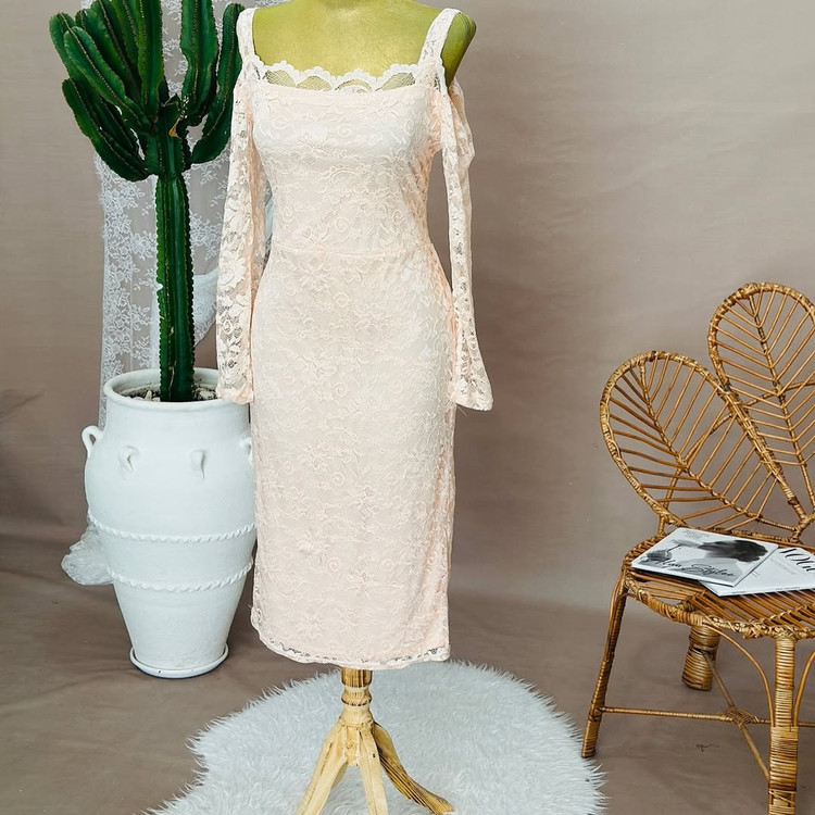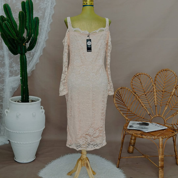 پیراهن زیبا گیپور کشی پارچه لطیف تنخور مشاببه گذاشته شده تگدار Boohoo